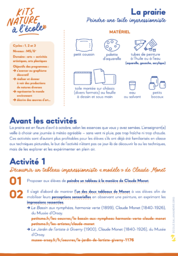 Pour travailler le sens de l'observation de vos élèves et leurs compétences artistiques, vous pouvez leur proposer de peindre une toile impressionniste de la prairie fleurie.